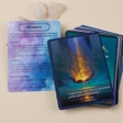 Що є в кожній картці:1. Тема (стан, процес або життєва сфера)2. Запитання - щоб зазирнути всередину3. Послання - підтримка та інсайт4. Завдання - практичний крок5. Підтримка від кола (якщо гра групова)6. Афірмація - для закріплення стану7. Метафоричний малюнок